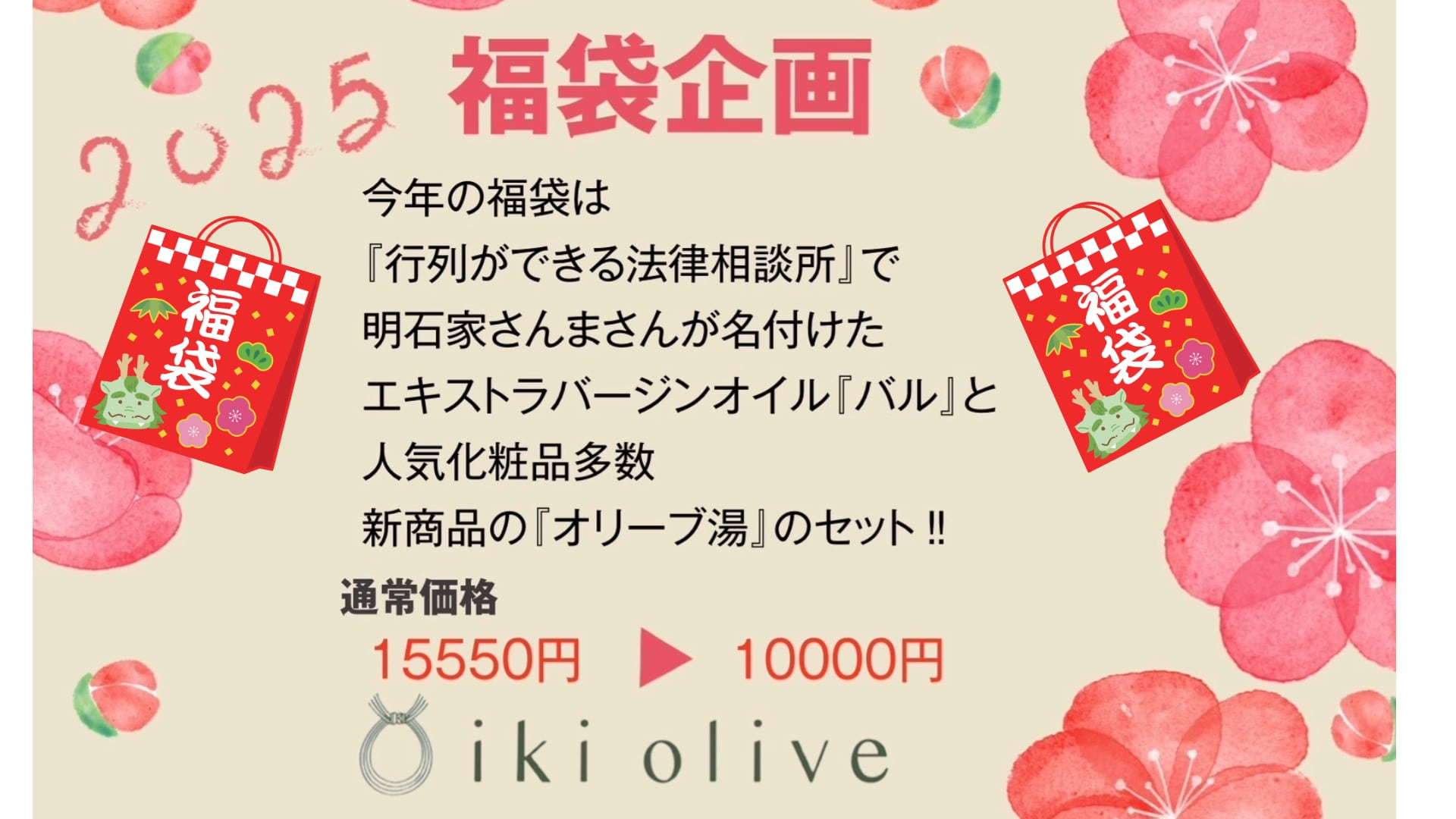 2026壱岐オリーブ園の福袋! 6品 総額¥15,500円→¥10,000円ポッキリにて提供、限定5個セット 早い者勝ちです!